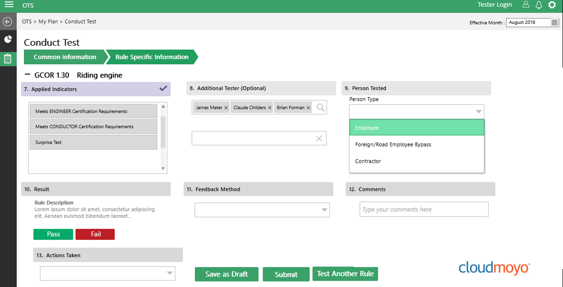 Operational tests can be conducted on foreign employees as well as employees of partner railroads. Leverage a scalable database to store testing-related data for foreign employees once tests have been conducted.
